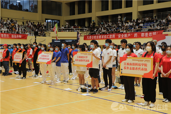讯 根据全民反诈宣传部署,为落实高校反诈工作,进一步夯实警格警务,5月10日晚,南昌市公安局联合江西应用科技学院在该学院体育馆举办全市高校“防范电信网络诈骗宣传周”活动启动仪式。市局党委委员、政治部主任陈国梁,省教育厅二级调研员、稳定处副处长伍斌斌,江西应用科技学院党委书记彭迪云、执行董事长余升淮、校长王胜华等出席。仪式由市局教育训练处处长闵尊东主持。
