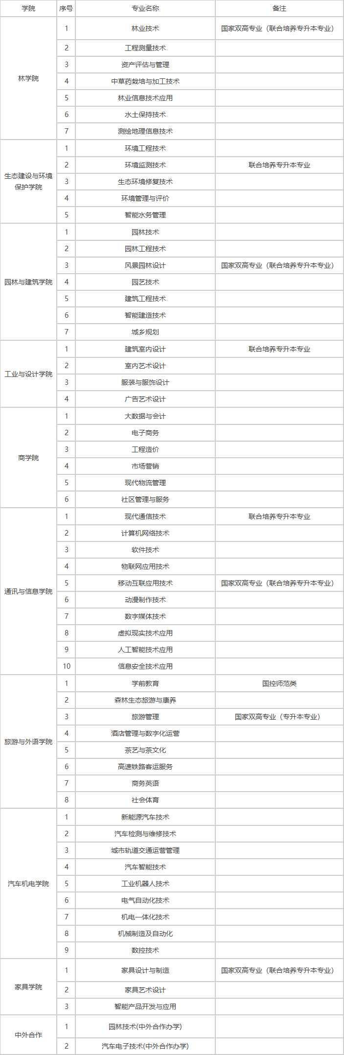第十条 办学特色:学校秉承立艺树人的校训,坚持以师生为根本,遵循特色办学、开放办学、合作办学的理念,不断深化教育教学改革,提升人才培养质量,是世界技能大赛中国集训基地,是国家生态文明教育基地、国家AAA级旅游景区、全国职业院校魅力校园、全国科普教育基地、全国就业50强高校。开设有旅游管理(森林旅游)、风景园林设计、移动互联应用技术、林业技术、环境监测与控制技术、家具设计与制造、通信技术、建筑室内设计8个专升本专业(与南昌航空大学、江西理工大学、江西农业大学、赣南师范大学、南昌工程学院联合办学)、59个高职专业、2个中外合作专业;现有国家教学资源库1个,省级教学资源库5个,国家精品在线课程1门,省级精品在线开放课程31门,立项省级教改课题54项;省级及以上特色专业、示范建设专业、人才培养创新试验区共33个,学校被评为教育部第三批国家级现代学徒制试点单位。