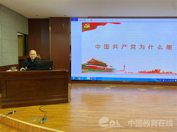 讯 5月25日下午,江西青年职业学院党委书记郭常亮以“中国共产党为什么能”为题,在行政楼多功能厅给学生上了一堂生动的形势与政策课。师生共100余人聆听。