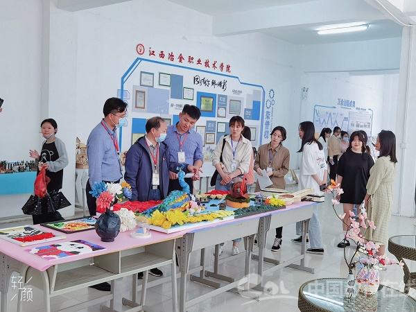 美育展上作品丰富,主要分美术作品和手工作品两大类。美术作品以“书学子风华 绘青春风采”为创作主题,有彩铅画、丙烯画和国画;手工作品则以“变废为宝 手工让生活更美好”为主题,主要类型有衍纸、剪纸、纸浆画、手工粘土等。前来参观的师生络绎不绝,现场人潮涌动。分院院长阮和平、党总支副书记欧阳小缨也充当起了“讲解员”,为前来观展的师生带来了精彩的思政文化分享。学院党委副书记、院长郭志江,党委副书记李茂旺,纪委书记谢向莹,副院长谢翀,副院长彭全先后到现场参观指导。