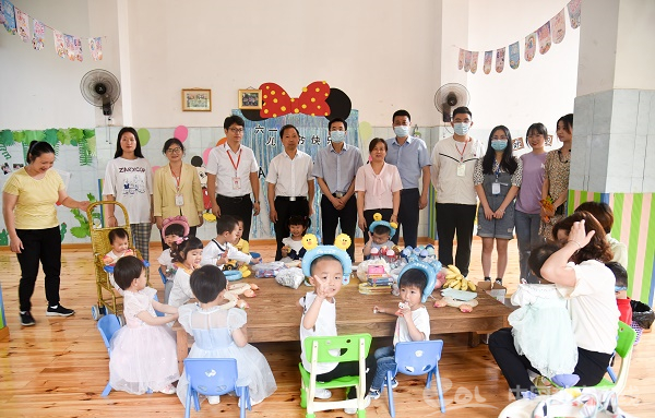 讯 6月1日上午,江西冶金职业技术学院党委书记杨乐文,党委副书记、院长郭志江,党委副书记李茂旺等一行来到院办托儿所,看望教职工入托儿童,与孩子们一起欢度六一。
