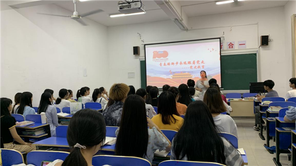 青少年教育系辅导员邱杨从身边的小事说起,从小学到中学到大学再到工作岗位每一个人生阶段说起,每一步的成长过程都离不来党的关怀和培养——“青春的脚步永远跟着党走”。