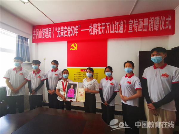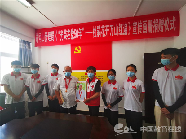 讯 8月2日,江西青年职业学院“最美井冈笑脸”党史学习实践团联合井冈山管理局、江西省红十字会在井冈山管理局会议室开展影像赠送会,向林场“光荣在党50年”老党员代表赠送前期拍摄制作好的照片和画册。这一刻,是践行“强国有我”青春誓言的大学生与弘扬革命传统优良风范的老党员对强国事业的心灵交融、赓续交接时刻,是有温度有真情有实感的党史学习教育的见证时刻。