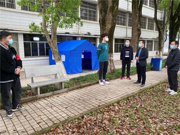 副院长刘安卿来到玉屏校区检查指导校园疫情防控工作,看望奋战在疫情防控一线的教职员工,表达学校对一线教职员工的关心与爱护。刘安卿先后走访了综合楼、医务室、学生寝室等处,详细查看工作台账,督促管理部要严格把好门口关,加强门岗24小时值班值守;要做好校区内各场所和外来物品消杀;要加强校园疫情防控演练;班主任要进一步落实晨、午检制度和查寝制度,做好人防物防,争创“示范无疫校园”。在走访结束后,刘安卿还专门召开了玉屏校区职工座谈会,对玉屏校区管理工作进行调度指导。