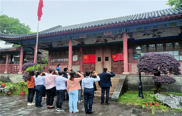 随后,思政部党支部书记周维带领全体党员在博物馆前重温入党誓词。全体党员面向党旗庄严肃立,庄严地举起右手,铿锵有力地重温入党誓词,重忆入党初心,重新接受党性洗礼。誓言铿锵,铿锵豪迈的声音震撼着在场的每一位党员,丹心闪耀,彰显了对党忠诚、为共产主义事业奋斗终身的决心。