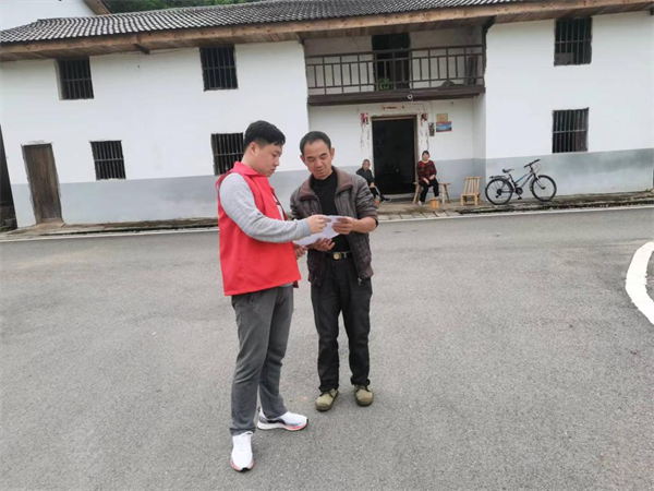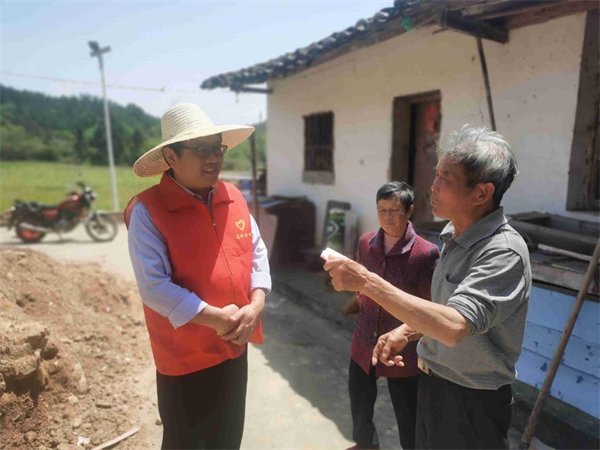 驻村工作队员刘凌海上门了解老人家中孩子的婚姻与赡养情况并作答疑