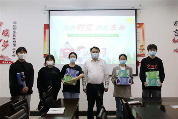 5月20日下午3点,何锐与2021级广告艺术设计1班同学们一同开展以《“疫”起努力,同赴未来》为主题的班会。辅导员朱命强给大家上了一堂生动的主题班会,解读奥密克戎病毒的特征,带领同学们学习防疫知识,心理抗疫指导等内容,指导同学们掌握科学防疫知识,内化于心,外化于行,筑起健康抗疫堡垒。随后同学们结合专业特长,开展了“疫情之下,邂逅大美工贸”海报创作大赛。何锐对主题班会的组织给予肯定,表示此次主题班会准备充分,同学们积极性很高,尤其是同学们利用专业特长创作的作品,充分反映出同学们学以致用、积极向上的正能量。最后,何锐给生活困难的同学送上暖心的慰问品。