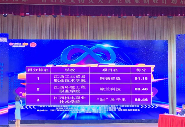 敢闯慧创,赣才留赣。6月9日,“赣江新区杯”江西省第八届大学生创业公开课总决赛在景德镇陶瓷大学举行。江西工业贸易职业技术学院《铜领制造》项目经过系部选拔、校级遴选、省级半决赛等激烈角逐,最终入围总决赛并脱颖而出,获得全省冠军,学院获得大赛优秀组织奖。