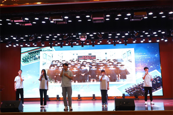 典礼开始前,大屏幕上播放着各学院毕业生在校期间的精彩瞬间和校园风光视频,在场每位毕业生回忆着在学校拼搏、努力、奋斗的时刻,视频中每位老师在学校的辛勤付出都值得点赞。随后,全体起立唱国歌,毕业典礼在庄严的国歌声中拉开帷幕。典礼分“丰收喜悦”“成长收获”“离别感怀”三个篇章展开。