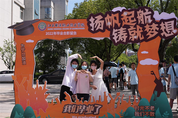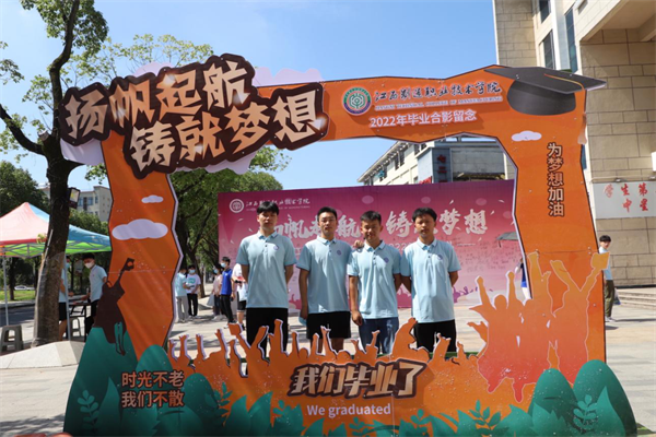 最后,典礼播放江西制造职业技术学院各生活部门为毕业生们准备的寄语,希望毕业生们传承制造精神,勇担时代使命,志存高远,以奋斗精神铸就青春底色,在新的征程上谱写壮丽的人生篇章,毕业典礼在学生们共同演唱《凤凰花开的路口》歌声中落下帷幕。本次毕业典礼采用全网同步直播方式,在祖国的四面八方,毕业生们相聚“云”端,一起参加这场温馨的毕业典礼。