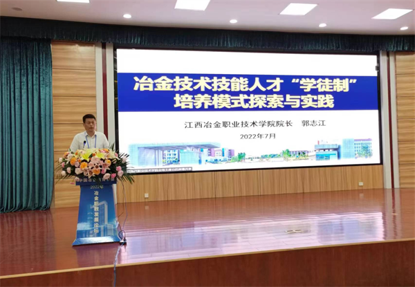 郭志江在专业(群)建设论坛中作“冶金技术技能人才‘学徒制’培养模式探索与实践”报告,从“现代学徒制”人才培养模式、企业新型学徒制人才培养模式、“大师工作室”学徒制人才培养模式等方面分享工作经验。他表示,时代发展赋予学徒制新内涵,在新时期大力发展中国特色学徒制,已经写进《职业教育法》,需要职教人继续深入探索,为建设技能中国贡献力量!