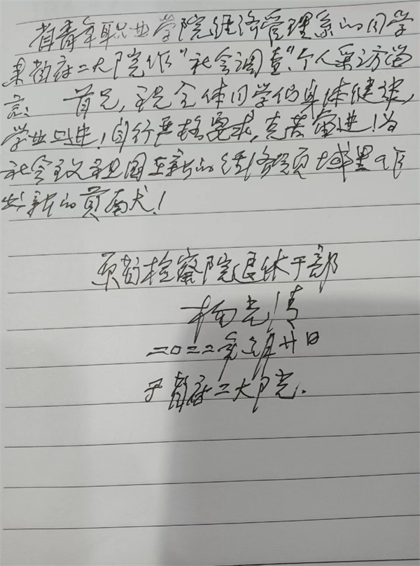 在结束之际,杨老还在本子上写下了对实践队的真情寄语并念给队员们听。