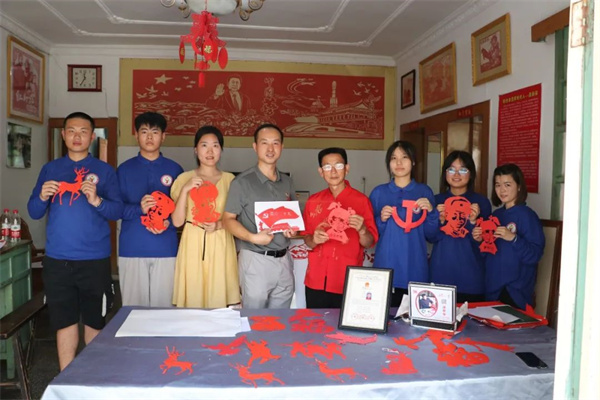 传承非遗文化 助力乡村振兴。剪纸艺术是我国非物质文化遗产项目之一,被称为“活的艺术”。为了深入了解并传承中国非物质文化遗产,进一步助力乡村振兴,投身传统文化的宣传与保护。7月15日,商务管理学院“传承非遗文化,助力乡村振兴”暑期实践团在分院党支部副书记唐毓林和团总支书记黄萍的带领下,前往新余市昌坊村拜访了新余非遗剪纸传人——昌新保。