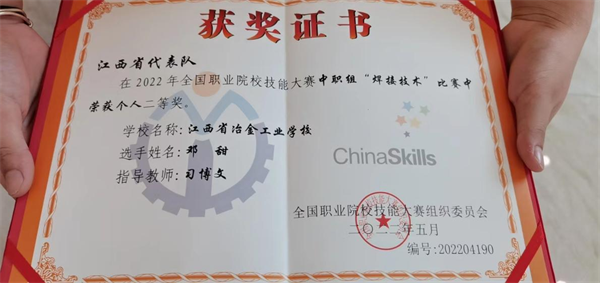 8月19日下午16时,2022年全国职业院校技能大赛“焊接技术”赛项(中职组)在聊城高级工程职业学校圆满落幕。来自全国33个省市自治区(含计划单列市)的60支参赛队伍齐聚江北水城,展开了一场高水平的技能大比拼。经过激烈角逐,江西冶金职业技术学院选手邓甜沉着应战,努力拼搏,获全国第13名(二等奖)的好成绩。