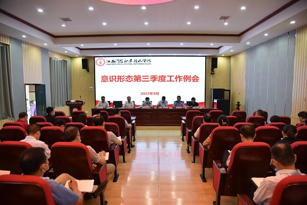 9月21日上午,江西冶金职业技术学院在思政讲堂召开2022年第三季度意识形态工作例会暨校地意识形态联席会。学校领导杨乐文、郭志江、李茂旺、谢向莹、谢翀、潘山,河下镇派出所所长华东出席会议。各党支部书记、部门负责人参加会议,会议由副院长潘山主持。
