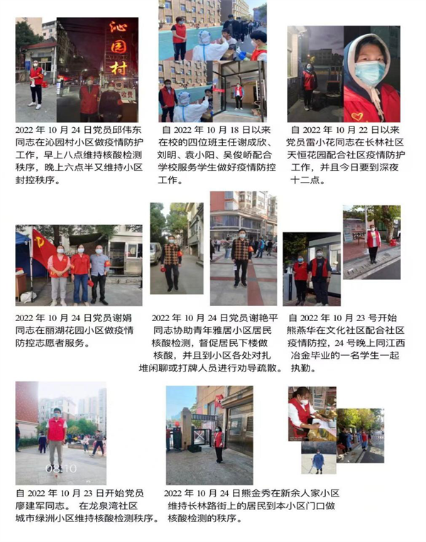 “抗击疫情,我们从不缺席。”从三尺讲堂到疫情防控一线,江西冶金职业技术学院公共课教学部的教师们,逆行而上,守护家园。线上坚守岗位开展网课教学落实“停课不停学”,线下作为志愿者驰援抗疫一线,无论是党员还是群众,他们来到学校、前往社区,纷纷自愿报名参加志愿服务,用实际行动展现“师者担当”。