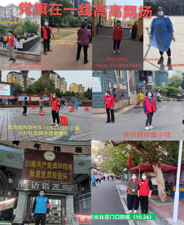 作为一名教师,江西冶金职业技术学院公共课教学部全体教师们无论是在社区值守还是在学校抗疫,在此次的疫情抗击中,他们充分展示了一个教师的情怀。作为一名教师党员,他们在最需要的时候,亮出了“党员”的身份,让党旗在抗疫一线高高飘扬,他们发挥着“榜样”的力量,在鼓舞着身边的你我催人奋进,逆向前行。