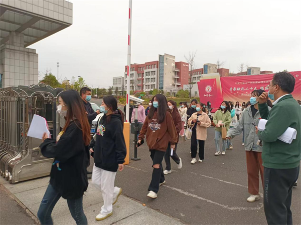 学校提起组织将要参加教师资格证考试的学生集体进行核酸检测,制定了周密的闭环方案和接送学生的通知,安排好随车教师,确保每一名学生都能顺利参加考试,安全回到校园。10月29日早上6:40,学校校长郭志江、副校长彭全,教务处副处长、分院院长和送考的教师们就到达了南校区南门口,7辆接送的大巴车已全部协调到位,核对好学生们“三码一戴”依次排队登车,并按照随车带队教师指引保持间隔地坐在自己的位置上。随着人员清点工作完成,专车载着考生、“学校一直和大家在一起,注意防护,考试顺利”带着学校领导的祝福有序驶向考点。