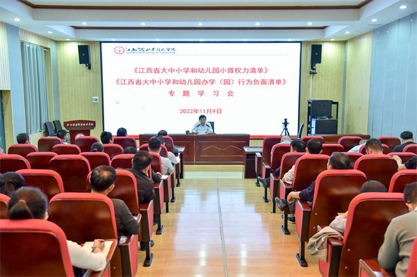 为进一步提升学院中层干部依法依纪依规行政、执教能力,浇筑学院依法办学坚实基础,近日,江西冶金职业技术学院纪委组织全体中层干部在思政大讲堂召开《江西省大中小学和幼儿园小微权力清单》《江西省大中小学和幼儿园办学(园)行为负面清单》专题学习会。