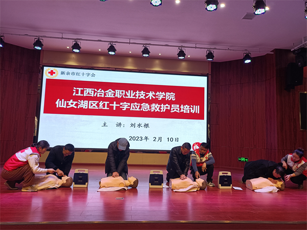 2月10日,开学第一天,江西冶金职业技术学院、新余市红十字会联合举办“开学第一课”校园救护员培训在图书馆学术报告大厅。学校医护人员、保卫处老师、体育老师和辅导员班主任共计55人参加了培训,党委委员、副院长潘山出席培训并讲话,商务管理学院承办培训。