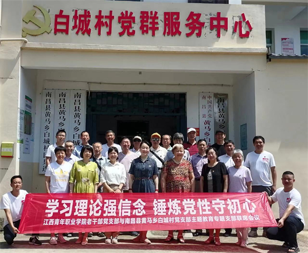 为推动学习贯彻习近平新时代中国特色社会主义思想主题教育取得实效,近日,江西青年职业学院老干部党支部组织部分党员赴黄马乡白城村,协同黄马乡白城村党总支开展“学习理论强信念,锤炼党性守初心”主题教育专题支部联席会议。老干部党支部书记郑炎明、南昌县黄马乡维稳办主任罗来辉、双方党员代表及南昌轨道交通集团驻村乡村振兴队队员等30余人参加会议。