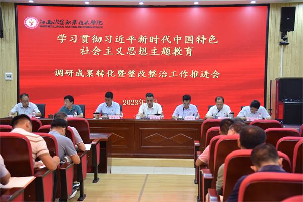 7月16日,江西冶金职业技术学院主题教育调研成果转化暨整改整治工作推进会在思政大讲堂召开。该校党委书记杨乐文主持会议并讲话,省国资委综合处处长朱德志到会指导,学校领导班子成员、全体中层干部、主题教育办公室有关人员参加会议。