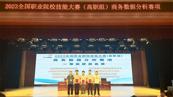7月17日,2023年全国职业院校技能大赛高职组商务数据分析赛项在山东商业职业技术学院落幕。江西外语外贸职业学院由电子商务学院教师周婷婷、欧阳潘指导,刘宣佑、刘建军、宁子怡三位同学组成的参赛队伍荣获一等奖。