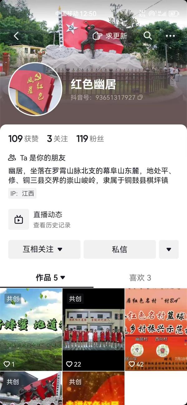 观察团为幽居村创建“红色幽居”抖音账号