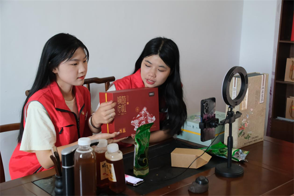 调查研究是我们党的传家宝,是做好各项工作的基本功。在访谈村两委干部和当地村民的过程中,观察团发现当地有红军豆腐作坊、纯天然蜂蜜养殖基地、茶园茶厂等产业基础,但缺乏销售和宣传渠道。在了解到村里的痛点堵点后,观察团成员杨颖同学当即提出可以发挥学校电子商务专业所学,组建电商助农小分队,为幽居村注册抖音直播账号,辅助推介幽居农产品。成员熊传鑫也表示可以发挥自己在学校木兰新媒体中心所学的运营技巧,帮助运营账号。目前团队已成功创建“红色幽居”抖音号,实践期间每日邀请蜂农进入直播间共同推介,同时依托“村BA”篮球赛、大学生社会实践等活动,每日推送作品为账号引流,提高“红色幽居”账号的关注度和浏览量,实现拓宽农产品销售渠道目标。