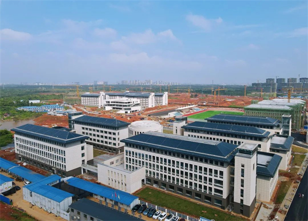 新学期开学第一天,赣江新区校区晴空万里。蓝天白云下,依山傍水处,一栋栋崭新的大楼拔地而起。上午九时许,永修县委、县政府、县人大、县政协四套班子领导来校调研开学工作。