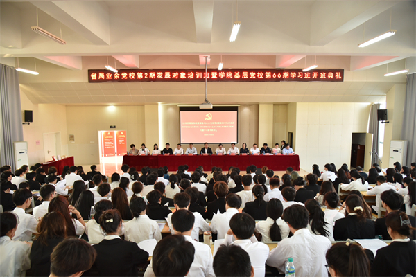 学院党委副书记、院长、基层党校校长万晓波,党委副书记、基层党校副校长彭锐,省局机关纪委专职副书记唐汉斌,学院党委委员、副院长刘国红及相关职能部门负责人、各系部党支部书记、指导老师及全体学员参加开班典礼。开班典礼由彭锐主持。