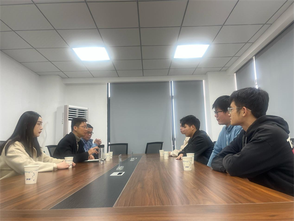 参观前,石磊书记、朱敏老师和驻企辅导员肖梦婷参加了实习生代表座谈会。石磊强调,实习是难能可贵的人生经历,实习中通过理论联系实践,自身在理论知识、实践技能和人际交往等方面都有了很大的提升,对未来的职业生涯也有了更深远的思考与更清晰的规划,为今后工作打下了坚实的基础。石磊向同学们详细了解实习中的工作内容、生活中遇到的困难、近期的职业规划等。实习生代表就实习过程中的成长和收获、心得和体会进行工作汇报和交流。