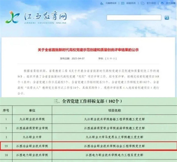 作为以冶金见长的学校,一举在第三届全国新能源汽车关键技术汽车电气装调工项目江西省选拔赛中,以前三名身份进入该项目的国一类比赛;我们思政教师在省职业院校教学能力大赛中荣获一等奖;我们的辅导员在省职业院校技能大赛中等职业学校班主任能力比赛中荣获一等奖。学校参与建设了江西省有色金属行业产教融合共同体、江西省钢铁行业产教融合共同体和新余锂电市域产教联合体,成为全省唯一实现行业产教融合共同体、市域产教联合体、现场工程师产业学院全覆盖的高职院校。