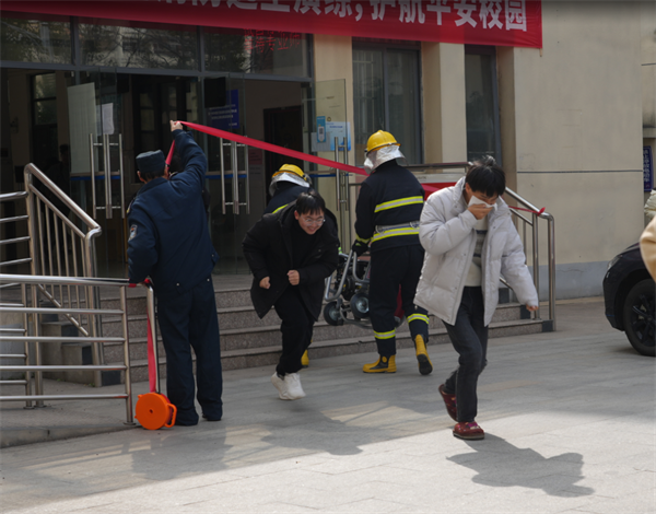 上午10点整,伴随着学校消控室烟雾报警响起,学校保卫处和各分院辅导员迅速行动,赶往演练现场指挥疏散学生,模拟救助伤员情景等。演练现场,同学们捂住口鼻,弯腰贴墙,按照事先设定的路线快速有序地撤离。事后各班辅导员对学生现场清点,确保无一人遗漏。
