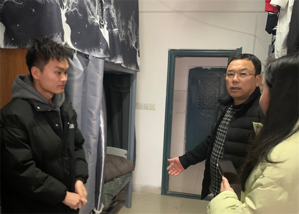 学校领导班子率先垂范,带领全体班级指导员深入到所联系班级的学生宿舍,就寝室卫生、消防安全开展了一次大检查、大排查,及时消除安全隐患,解决学生困难,从生活上关心学生,在心理上关爱学生。