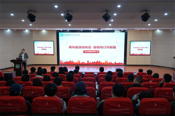 党委书记聂林水和党委副书记、校长蔡冬根以《乘风破浪扬帆劲 奋楫笃行开新篇》为主题,从党史学习、安全教育、就业指导等方面引导学生树立正确的世界观、人生观、价值观。在党史学习方面,书记和校长生动讲解了中国共产党从成立之初到如今的辉煌历程,引导学生珍惜在校学习时间,做好人生规划,在思想引领上“走在前”,在专业学习上“勇争先”,在全面发展上“善作为”。在安全教育方面,书记和校长就消防安全、交通安全和食品安全,讲解了逃生自救、正确使用消防器材、遵守交通规则、关注心理健康等知识。在就业指导方面,书记和校长指出国家出台了一系列稳就业政策,分析当前我校学生的就业优势,鼓励学生要把握行业发展趋势,主动寻找与个人专业和志趣相匹配的就业机会,勉励学生勇于挑战,将个人理想融入国家发展、民族复兴的伟大征程,成为具有社会责任感和创新精神的优秀人才。