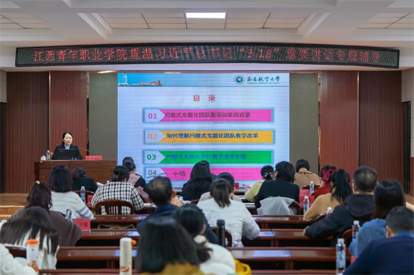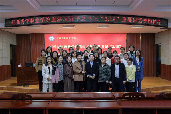 在习近平总书记主持召开学校思想政治理论课教师座谈会五周年之际,江西青年职业学院邀请南昌航空大学马克思主义学院院长郭莉来校作重温习近平总书记“3.18”重要讲话精神专题辅导讲座。全体专兼职思政课教师聆听讲座,讲座由学校党委委员、党委宣传部部长邓美娇主持。