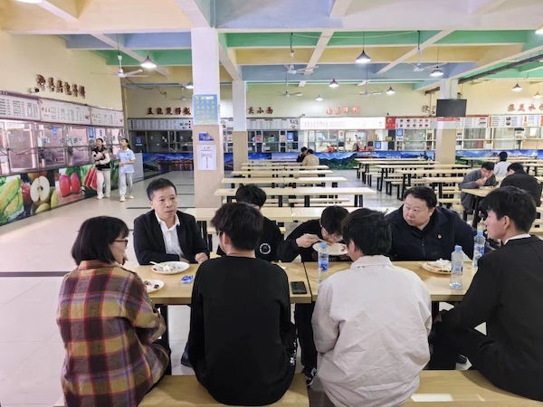 座谈结束,罗来松走进食堂与青年师生共进午餐,聊家常、话成长,并检查食堂食品安全卫生情况。(作者:胡小青)