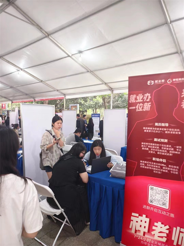 此次活动中,就业桥工作人员为毕业生们提供一系列的AI就业指导服务,包含AI简历诊断、AI模拟面试等个性化内容。AI技术的智能应用使得毕业生们的求职旅程更加明确和高效,为他们即将踏上的职业生涯注入了源源不断的信心和动力。