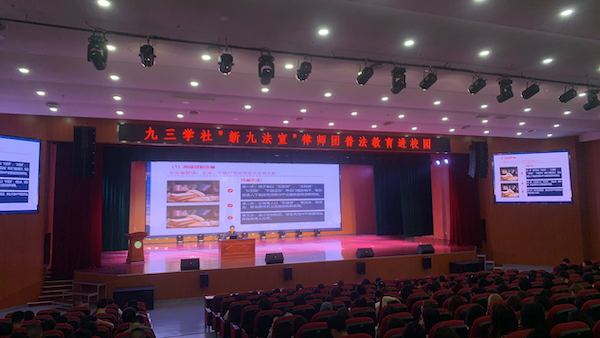 近日,江西制造职业技术学院特邀九三学社江西省新联基层委员会“新九法宣”律师团成员、江西灯正律师事务所执行主任熊坚律师,为学校师生召开“学法守法懂法,慎思明辨笃行”的普法专题讲座。学校各分院师生代表共计700余人参加。