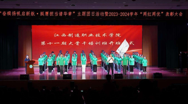 5月14日,江西制造职业技术学院在大礼堂隆重召开“奋楫扬帆启新航 挺膺担当谱华章”主题团日活动暨2023-2024学年“两红两优”表彰大会。学校党委书记聂林水及其他在家校领导出席大会,各分院党支部书记、相关部门负责人、各分院团总支书记及青年师生代表参加大会。会议由校团委干事朱泳主持。