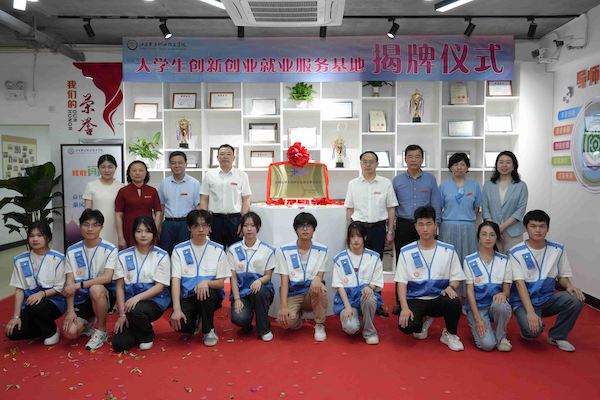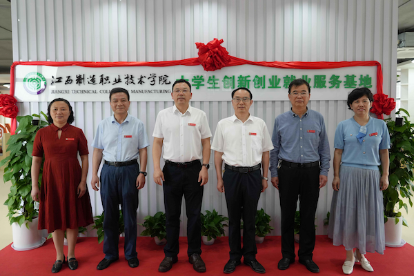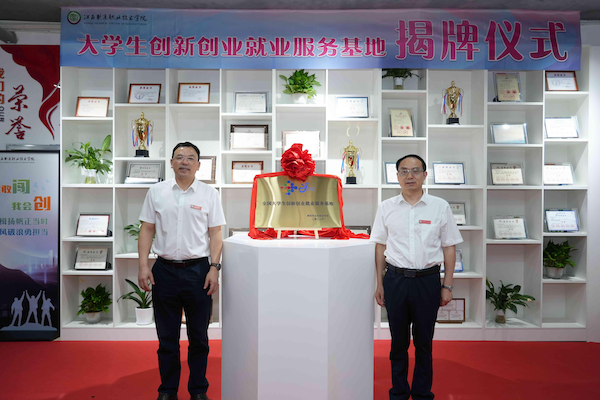 最后,聂林水和蔡冬根共同为江西制造职业技术学院大学生创新创业就业服务基地揭牌。