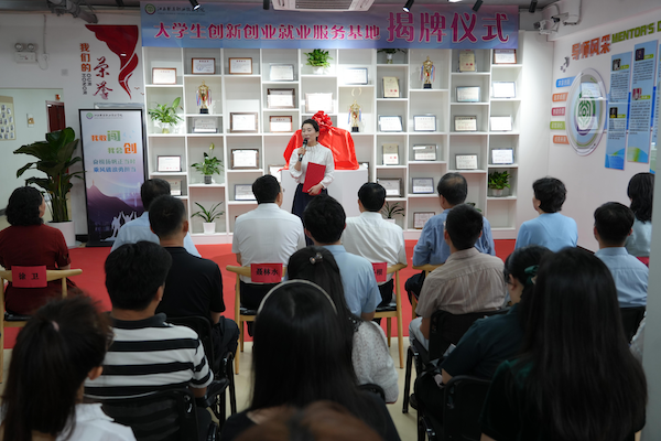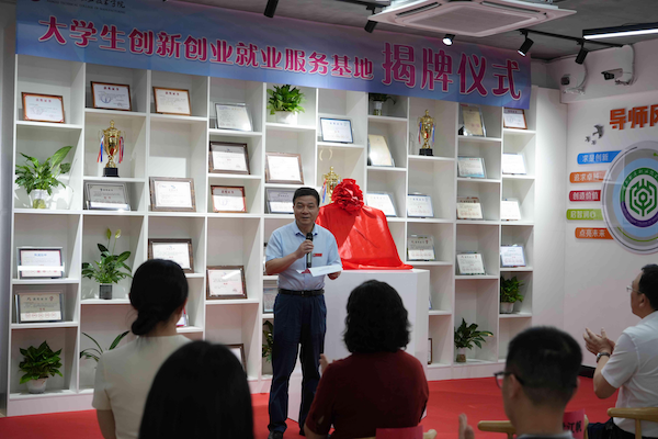 仪式开始,付江帆代表学校致辞。他向大学生创新创业就业服务基地的揭牌启动表示热烈的祝贺、向关心支持学校创新创业教育工作发展的各位领导、导师表示衷心的感谢,向在创新创业的青春赛道上努力奔跑的同学们致以诚挚的问候。他强调,要注重专创教育的融合,从教育目标、课程体系以及教学方式三个方面,推动创新创业教育与专业教育深度融合,帮助学生在创新创业中巩固专业知识,在专业教育中提高创新创业能力,为我省经济社会发展提供更加有力的人才支撑。