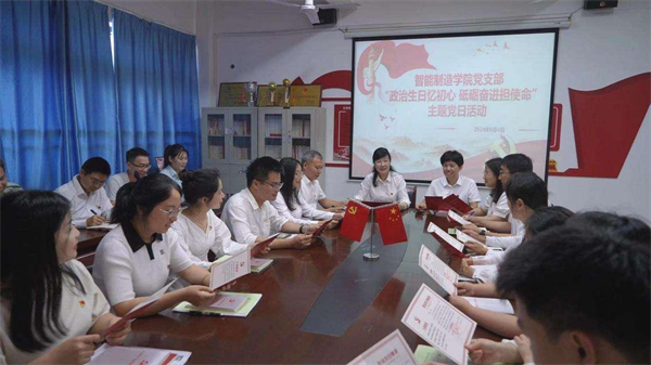 为进一步增强党员身份意识和责任意识,提升党组织向心力和凝聚力,扎实推动党纪学习教育走深走实。6月4日,江西制造职业技术学院智能制造学院党支部组织全体党员在413会议室开展了“政治生日忆初心 砥砺奋进担使命”政治生日暨主题党日活动。江西制造职业技术学院学校党委委员、副所长郑小民作为普通党员参加活动,活动由分院党支部书记熊玲鸿主持。