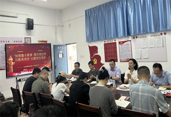 为加强警示教育,推动党纪学习教育走深走实,切实增强党员干部的政治定力、纪律定力、道德定力、抵腐定力,提升党纪学习教育质效。6月11日,江西制造职业技术学院经济管理学院党支部在413会议室开展“加强警示教育 提升党纪学习教育质效”主题党日活动。学校党委书记聂林水以普通党员身份参加,活动由分院党支部书记李娜主持,全体党员参与。