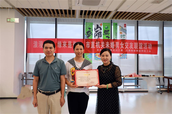 为丰富江西财经职业学院青年业余文化生活,拓展未婚男女的社交渠道,切实帮助解决单身男女的婚姻难题,6月20日,由校工会与九江市直机关妇工委联合主办、校团委协办的“浪漫有约 缘来是你”——市直机关未婚男女交友联谊活动成功举办。九江市市直机关妇工委主任张龄芝、九江市总工会办公室杨益年亲临现场。来自市直机关各单位的近60名单身青年参加了此次活动。