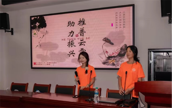 童语同音筑桥梁。推普小分队以“语言乐园”为主题,开展丰富多彩的普通话趣味活动,倾力构筑推广普通话的桥梁。在理论宣讲环节,队员们生动讲述了普通话的历史渊源及其在现代社会的重要作用,在孩子们的心田播撒热爱祖国通用语言的种子。绕口令挑战课上,队员们精心挑选了富有童趣的绕口令,引领孩子们在欢声笑语中感受语言的魅力,激发他们学习普通话的兴趣与热情。四声歌教学课上,队员们开展“看谁读得准”活动,让标准的语音语调深深印在孩子们的心中。传话游戏环节,队员们组织了一场小组接力赛,不仅增强了小朋友们的团队协作能力,更让他们在游戏中体验到准确表达的重要性,意识到掌握国家通用语言对于个人成长和社会交流的意义所在。