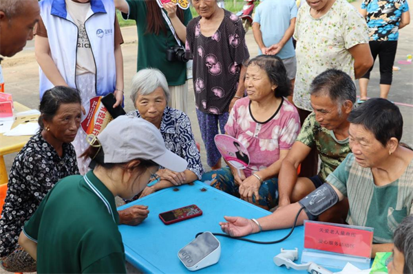 队员们的细心嘱托让村里的老人们感受到了温暖,纷纷表示会更加注重自身健康问题,对高血压做到早预防早控制。初步统计,有80余位老人参与了血压检测,发现高血压风险人数占比为10%,志愿者们对有高血压风险的老年人均进行了初步的健康指导,并嘱咐如有不适尽快就医。