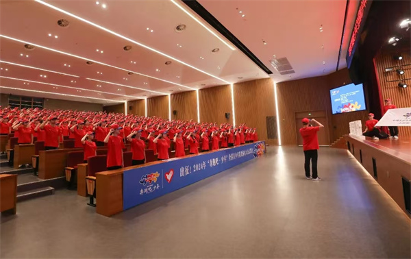 8月18日上午在南昌市委党校出征仪式上,学校李赫同学作为志愿者代表领誓