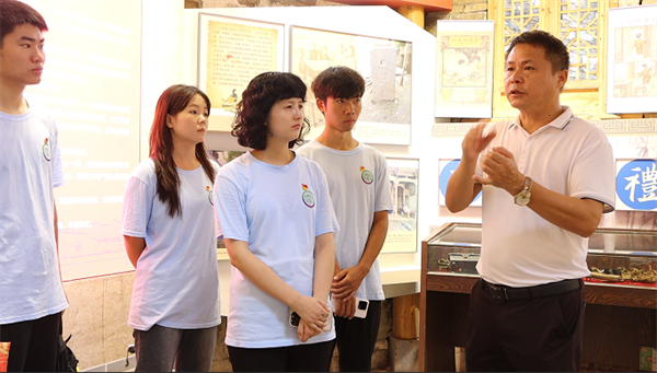 在有着深厚的红色文化底蕴的江村乡诰峰村,实践队员们参观了江式训革命烈士纪念馆,通过回顾这位革命英雄“丹心映照诰峰秀,碧血染将雨花台”的生平事迹,队员们仿佛亲身走过那段波澜壮阔的革命岁月,更加深刻的感受到了革命先辈英勇无畏、吃苦耐劳的精神。随后,在村书记的带领下,“实践队”走访了江式训烈士后人江海宜,表达对烈士家属的亲切问候和崇高敬意,江海宜向队员们分享了江式训烈士的英雄故事和红色家风,队员们被一个个关于忠诚与担当的动人故事深深折服,感叹于那份跨越时代、历久弥新的忠义精神力量,敬佩之情跃然于心。